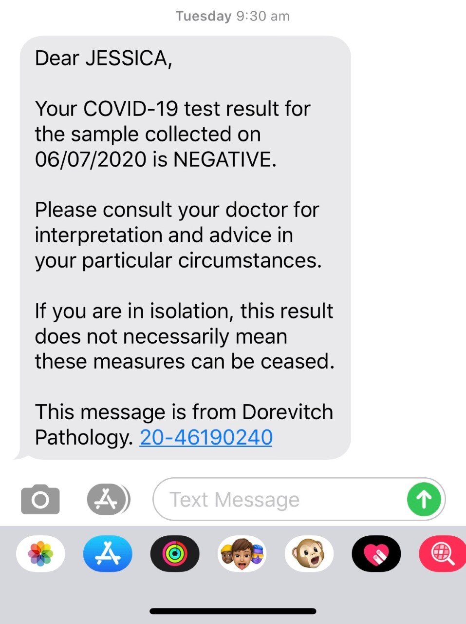Coronavirus Test Results Via Text