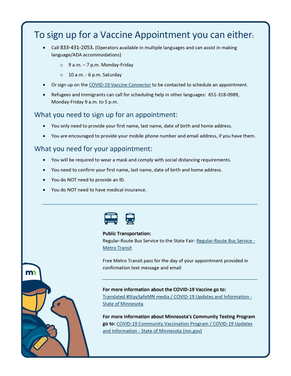 For Refugees and Immigrants who need help making an appointment in other languages. 55454 55103 55130 55411 55404 55117 55428 55119 55107 55106 55407 55430 55412 55102. Just one day earlier Minnesota health officials and Governor Tim Walz announced the state would be opening up guidelines to allow vaccination for roughly 2 million more Minnesota residents.