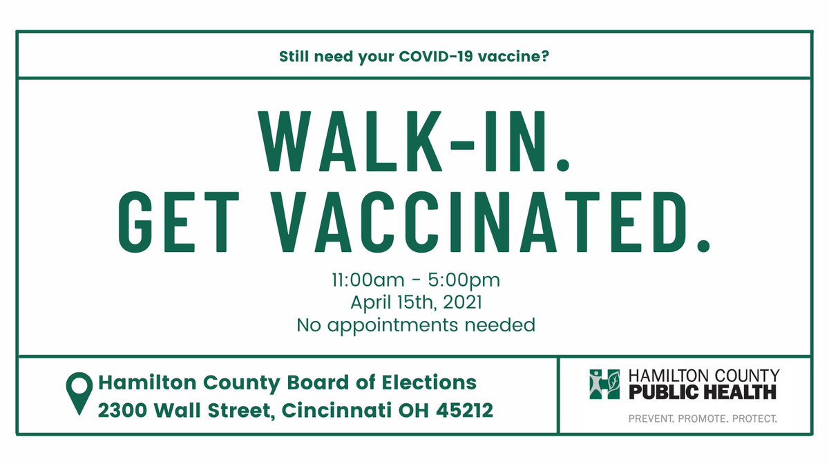 CINCINNATI FOX19 - Hamilton County Public Health will no longer require appointments for vaccination at its Board of Election Clinics.