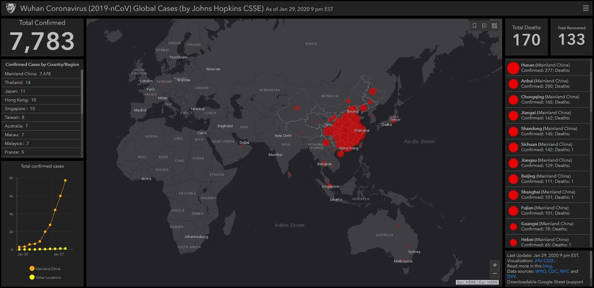 World Health Organization Coronavirus disease situation dashboard presents official daily counts of COVID-19 cases and deaths worldwide along with vaccination rates and other vaccination data while providing a hub to other resources. Coronavirus COVID-19 global cases Johns Hopkins COVID-19 event risk assessment planning tool Georgia Tech US spread of COVID-19 maps and analytics SharedGe0 Novel coronavirus COVID-19 outbreak timeline map HealthMap Novel coronavirus infection map University of Washington COVID-19 surveillance dashboard University of Virginia. Johns Hopkins Universitys Center for Systems Science and Engineering has created a real-time visualisation of the outbreak that includes a map listings of total numbers of.