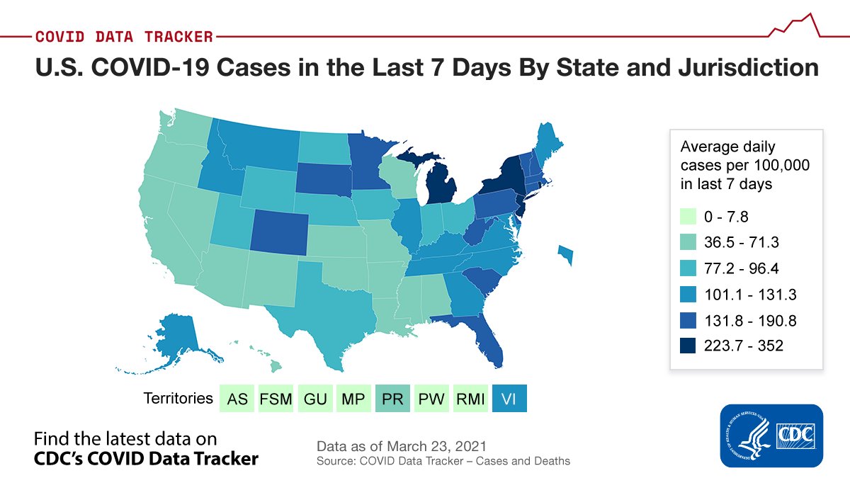 Cdc On Twitter Rates Of Covid19 Are Increasing Across The U S As Of March 23 The 7 Day Average Of New Cases Per Day Is 56 225 Help Stop The Spread Of Covid 19 Wear